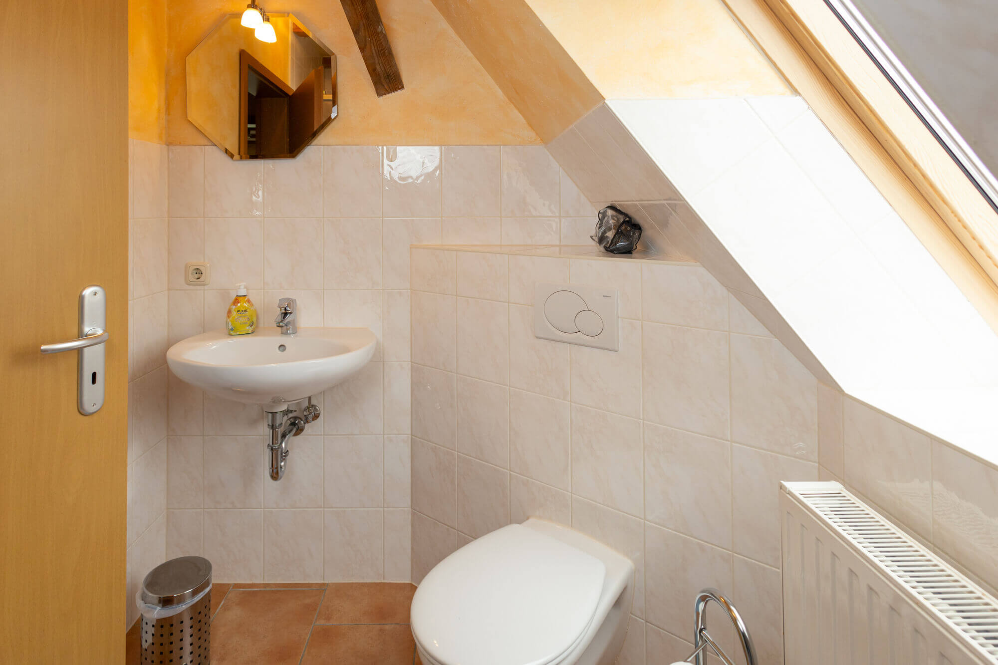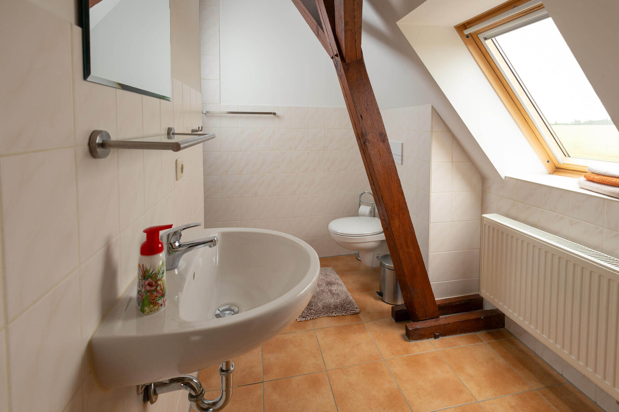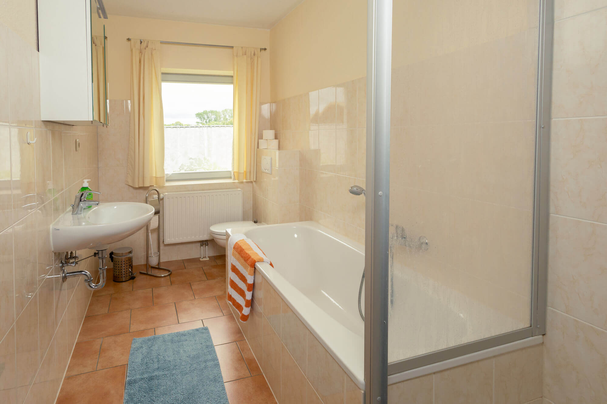 - Bad mit Dusche, WC, Badewanne & Fön