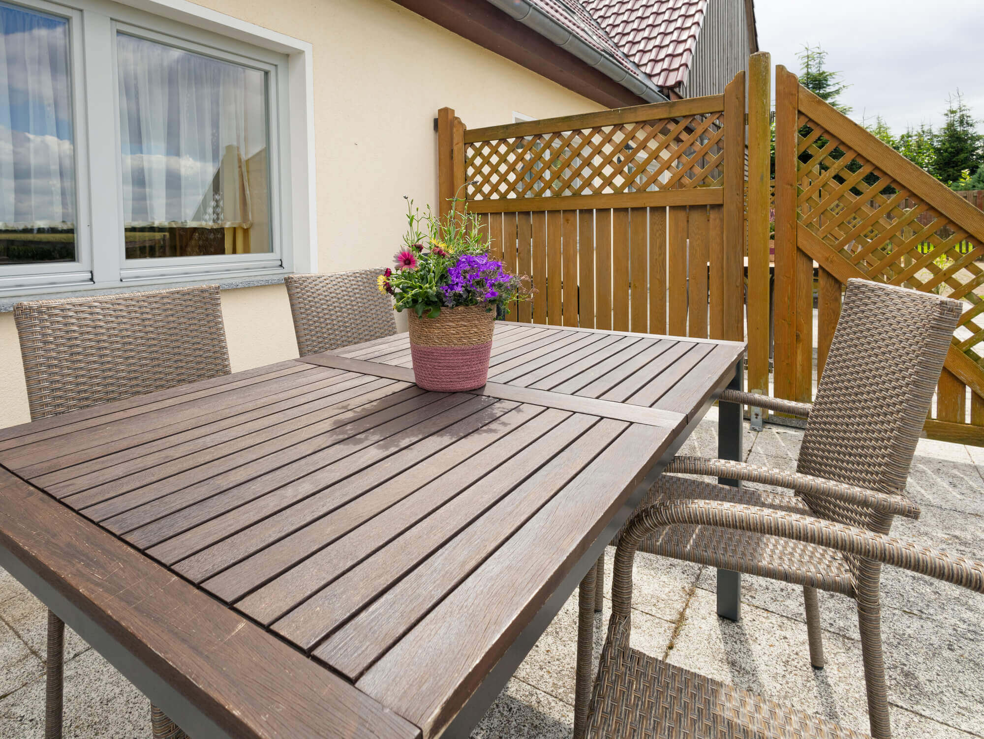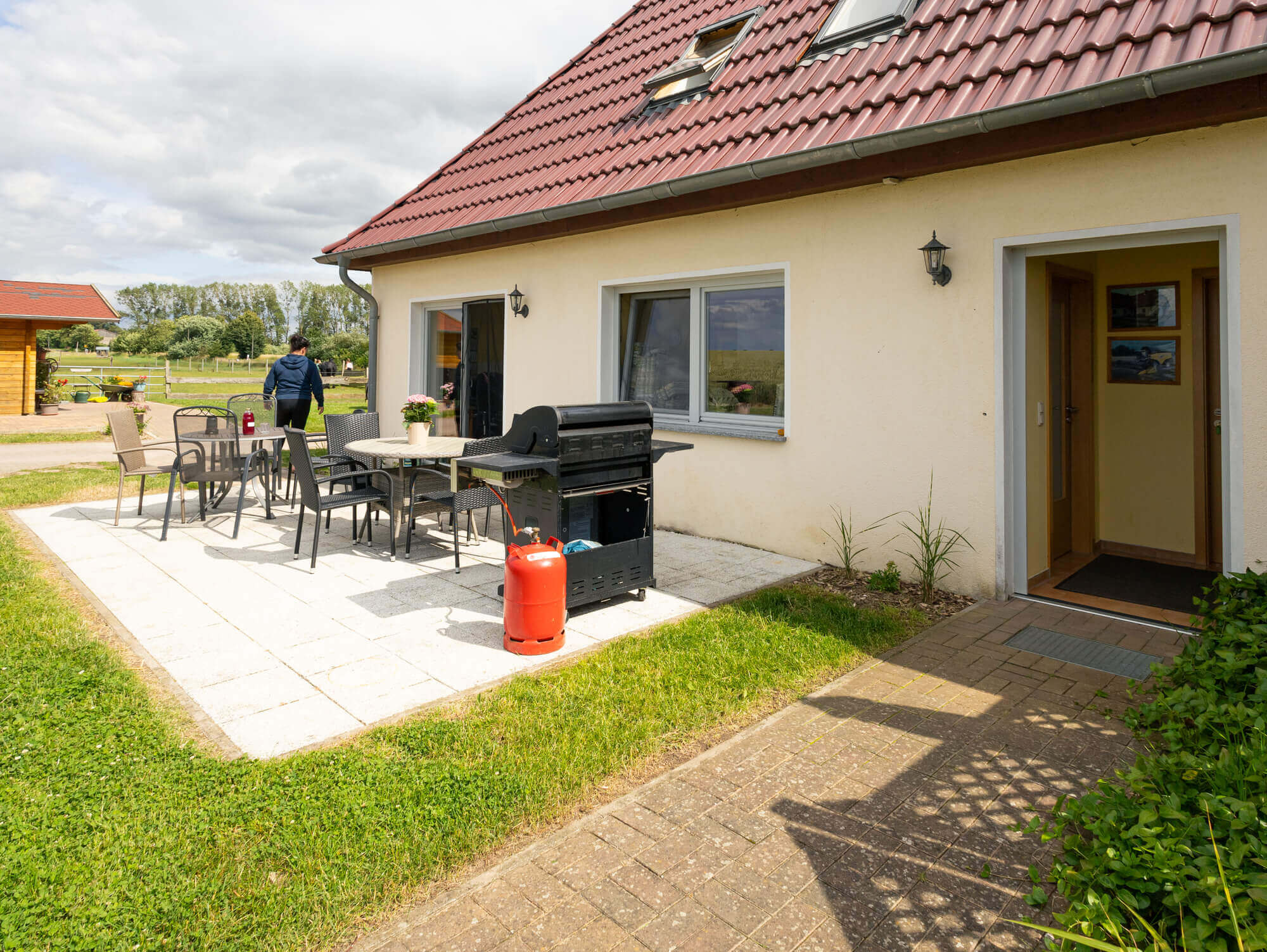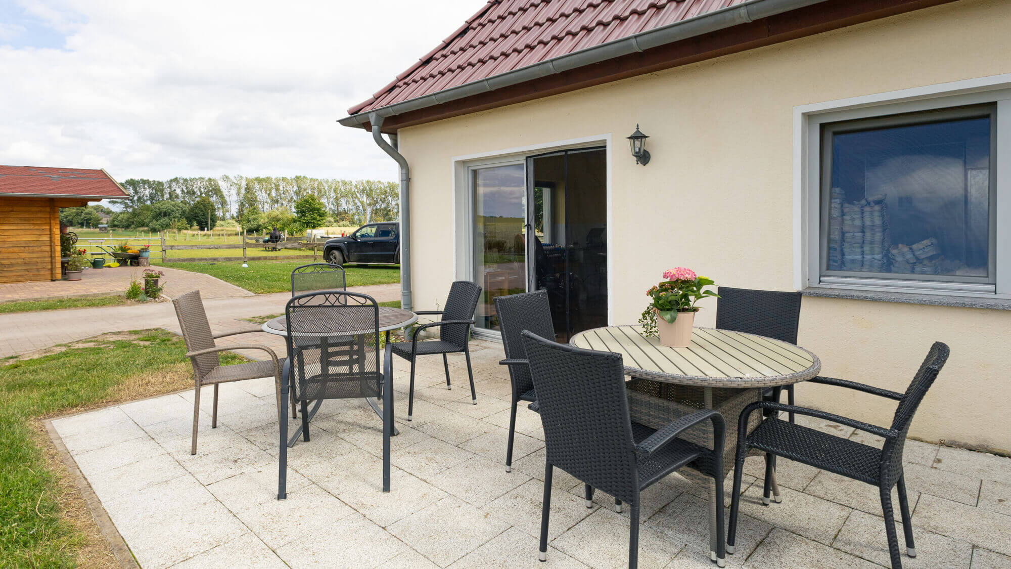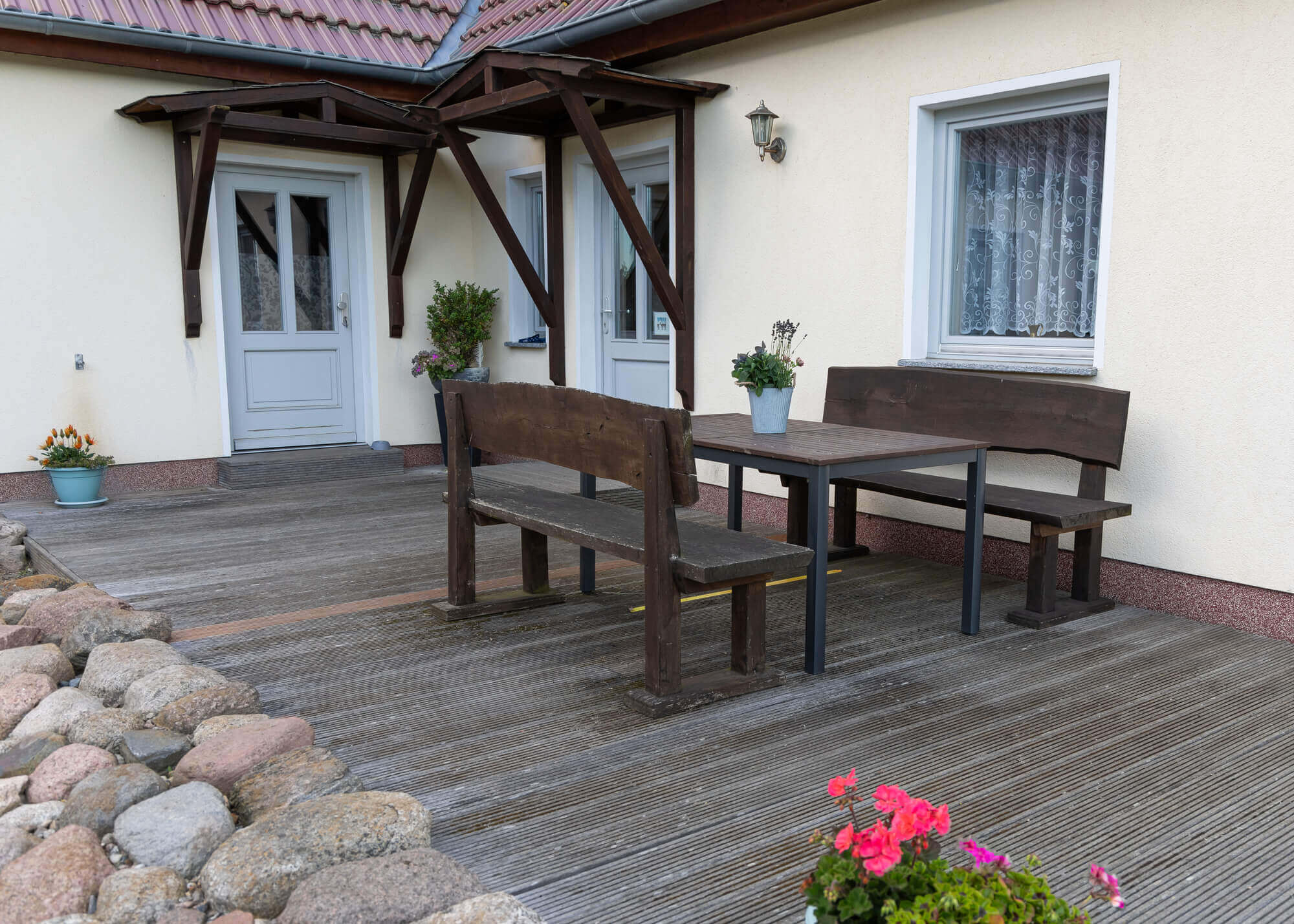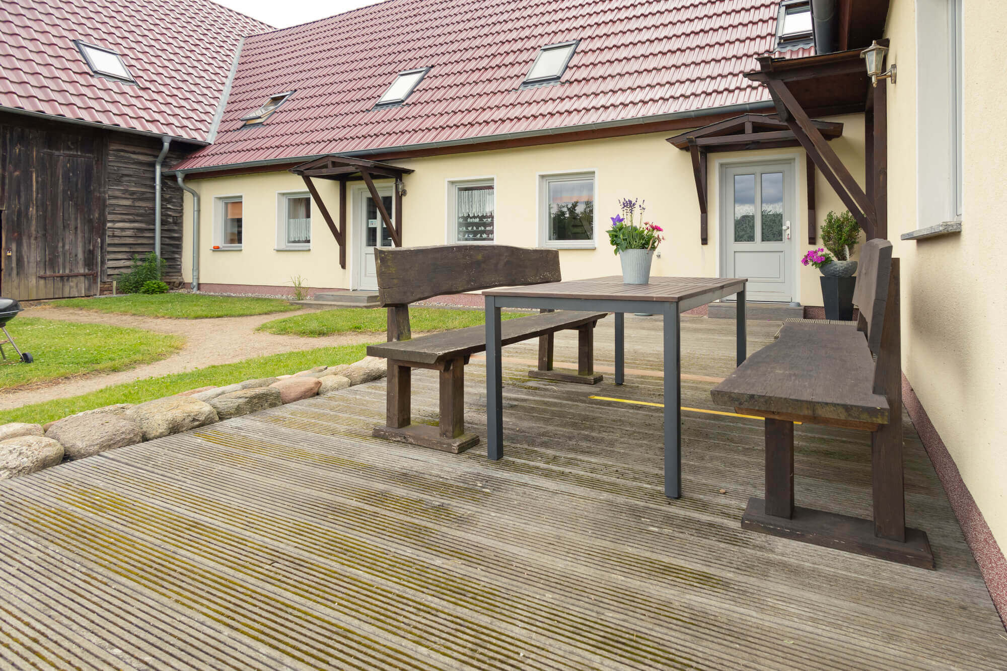 Auf unseren großen Terrassen lässt es sich bei gutem Wetter hervorragend frühstücken oder grillen.