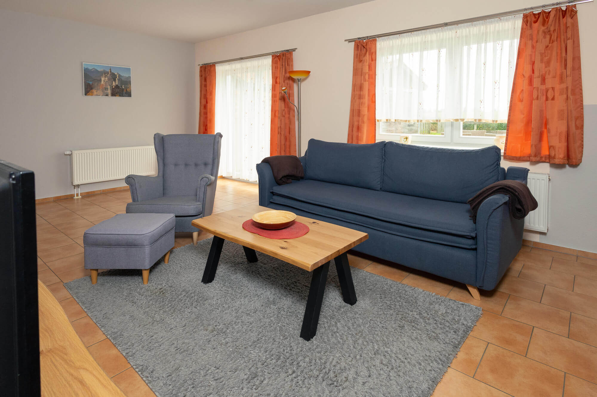 Unsere modernen, familienfreundlich und komfortabel eingerichteten Ferienwohnungen (Nichtraucher) bestehen alle aus einem Schlafraum, einem Wohnraum mit SAT-Flat-TV, DVD-Player und Radio-CD-Player, einer gut ausgestatteten Küche sowie einem eigenen Bad mit WC und Dusche oder Badewanne sowie Fön.