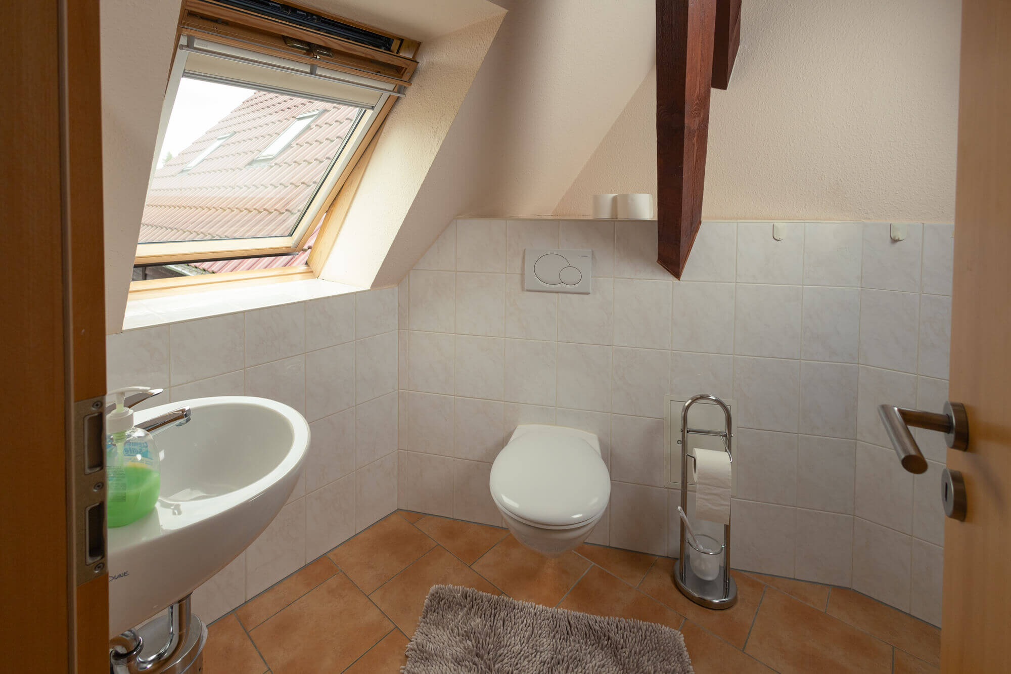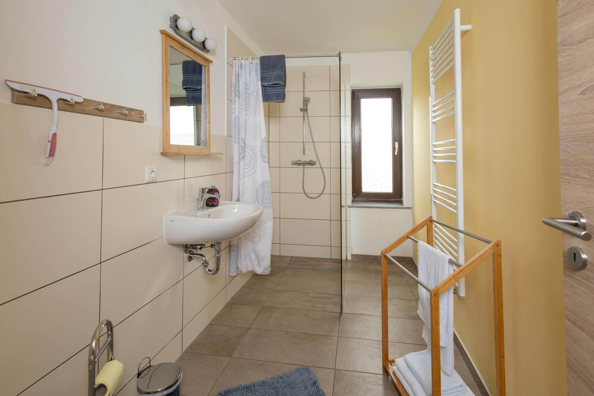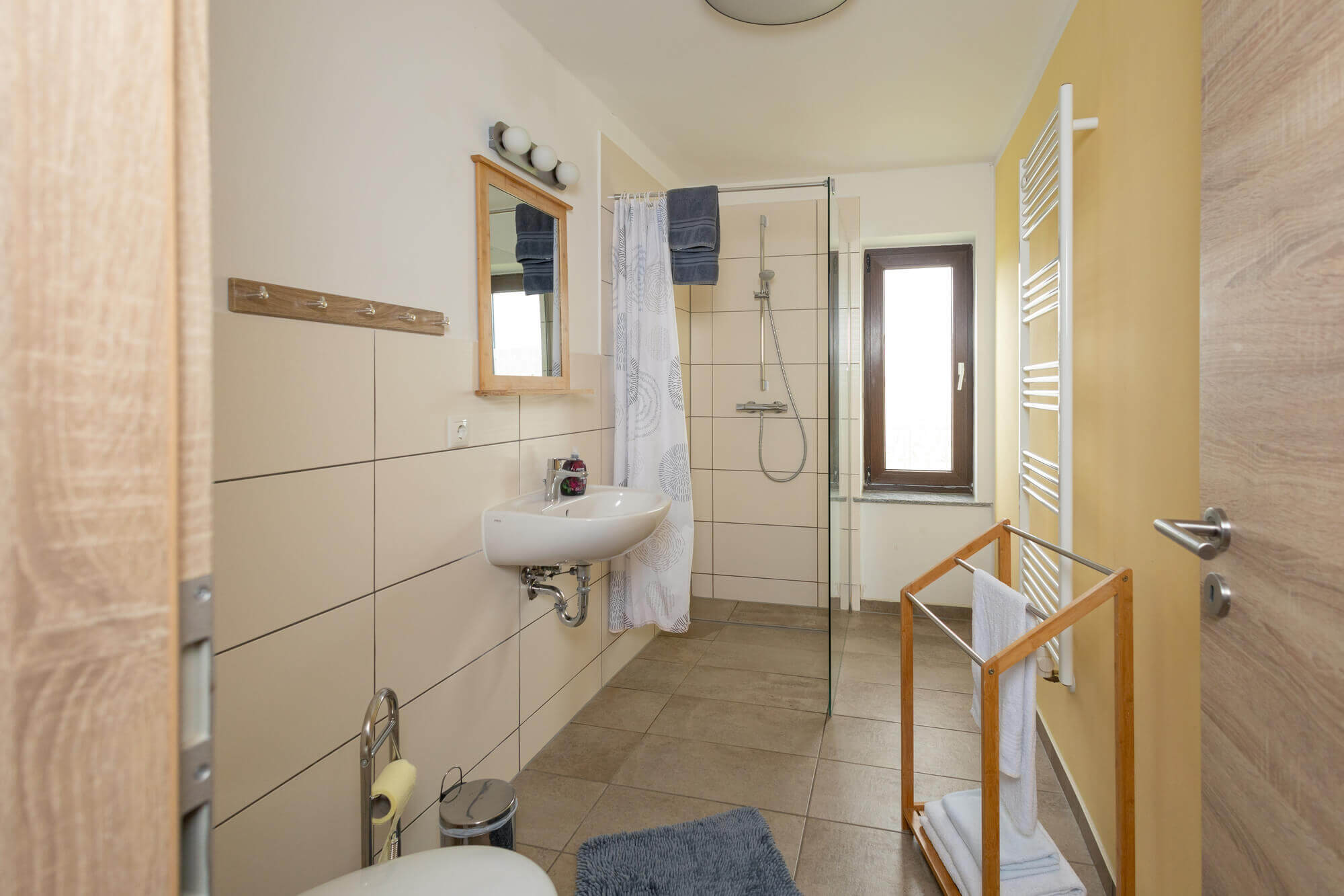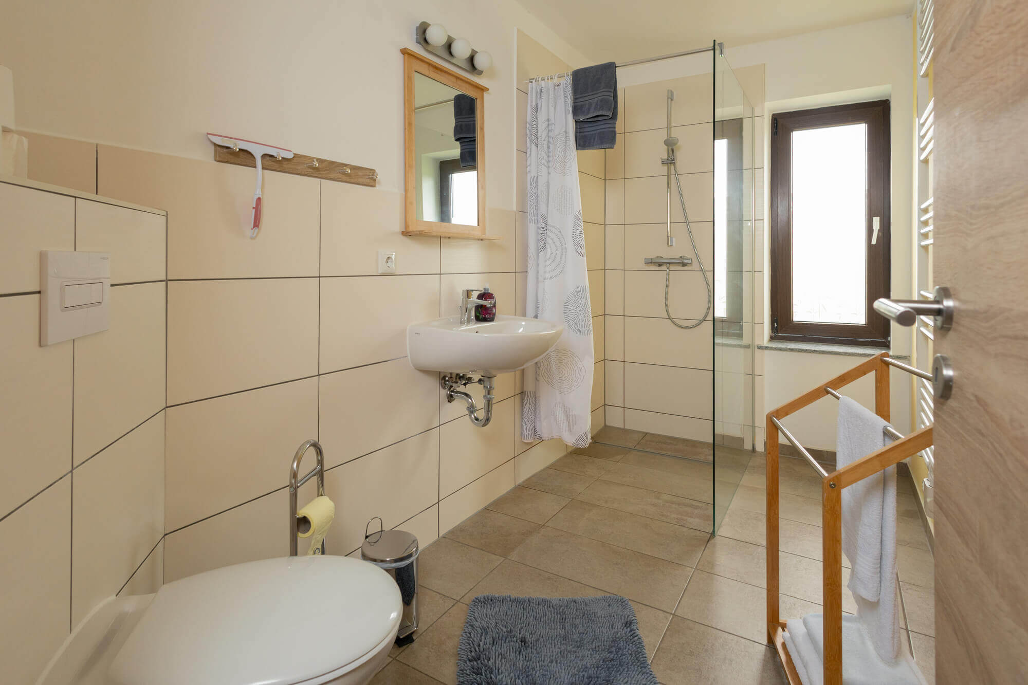 - großes Bad mit ebenerdiger Dusche/WC, Fön, kleines Gäste-WC